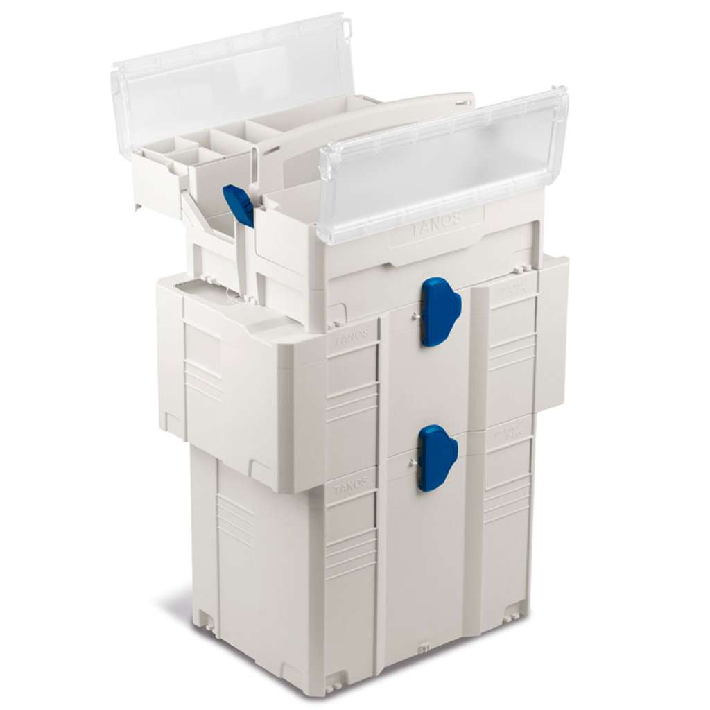 This Systainer is mostly compatible with all three generations of Systainers! It can be stacked on top of a Systainer³, T-Loc, or Classic. With its extended handle on top, it can nest with another Storage-Box or T-Loc generation Tool-Box. With its standard footprint, it fits perfectly centered on the L width or can be placed side by side on the XXL width.