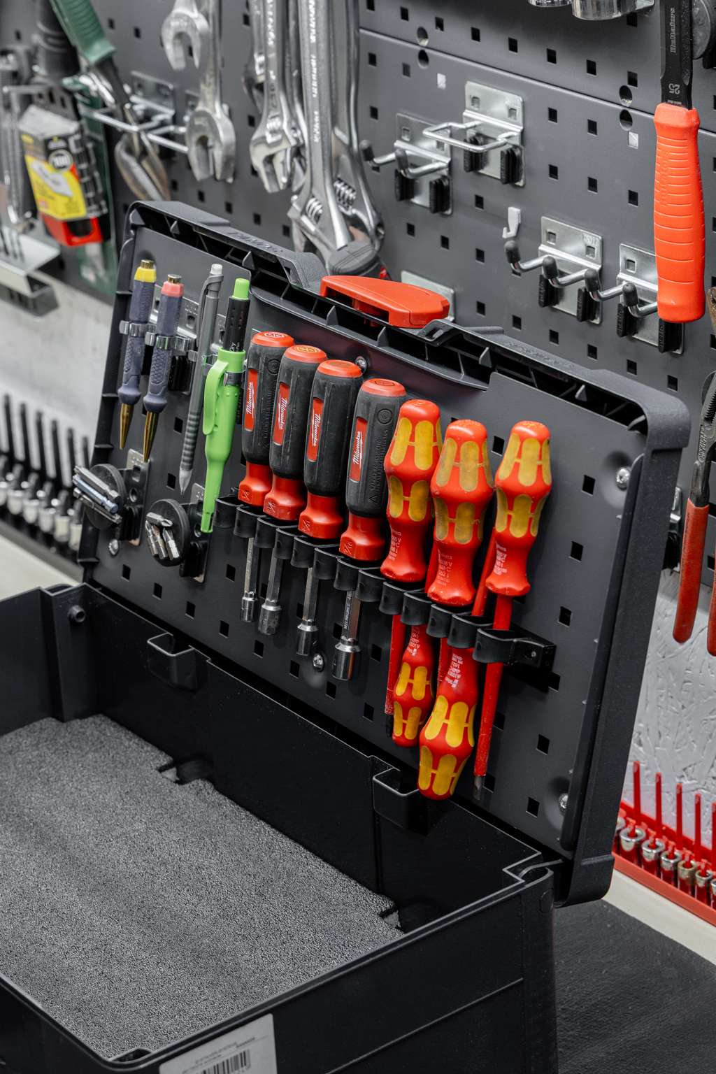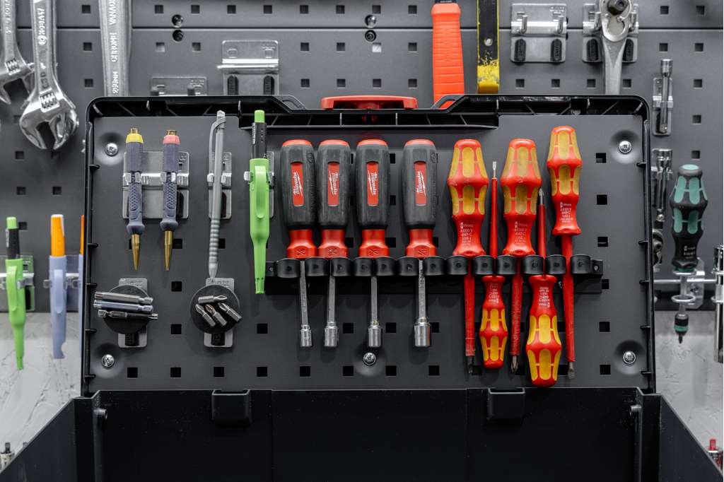 Perfo is Bott’s signature punched-panel system used for organizing tools and equipment. The perforated steel panels feature a grid of holes that accept hooks, holders, and accessories, allowing you to create a customizable, secure, and efficient storage layout—perfect for workshops, service vans, and industrial spaces.